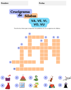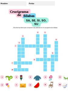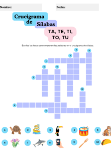 Crucigrama de sílabas con imágenes – Serie de lectoescritura Parte 3